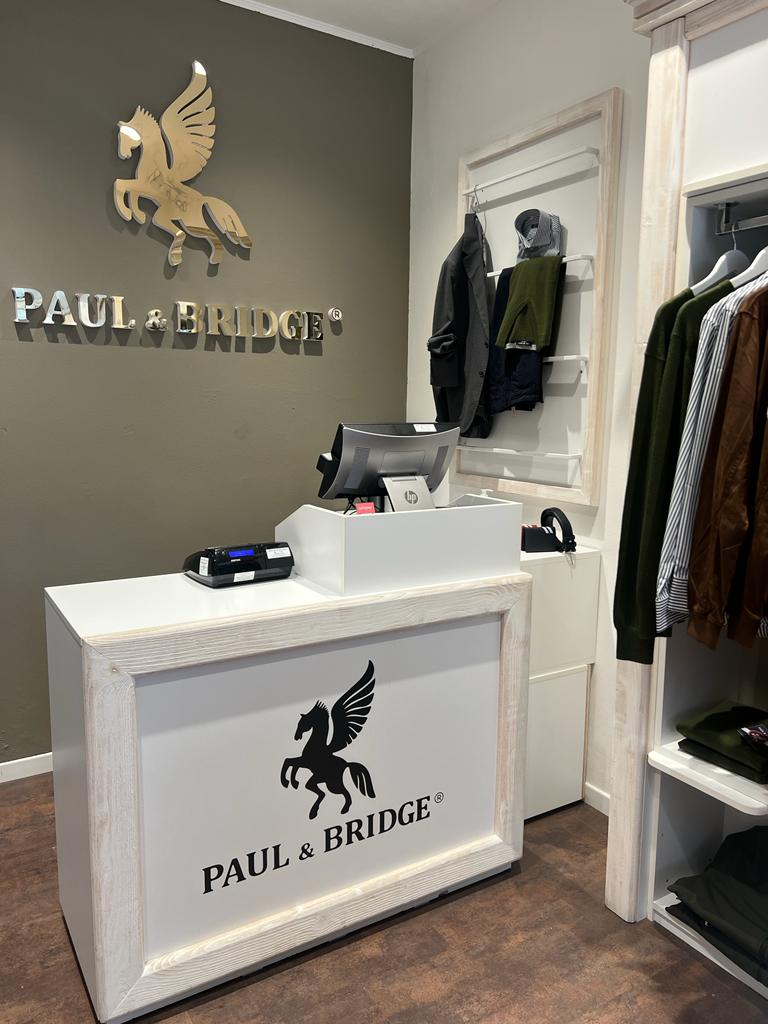 Paul & Bridge nuovo brand di abbigliamento e accessori uomo che nasce con l'intento di offrire un ottimo rapporto tra qualità e prezzo. troverete una vasta scelta di maglieria, pantaloni, jeans, giubbotti e abbigliamento casual ma anche giacche e camicie per accompagnarvi in ogni occasione. Il nostro obiettivo è di far sentire il cliente come a "casa", per questo sarete seguiti con professionalità e cortesia dal nostro personale....